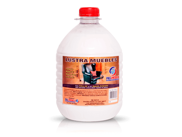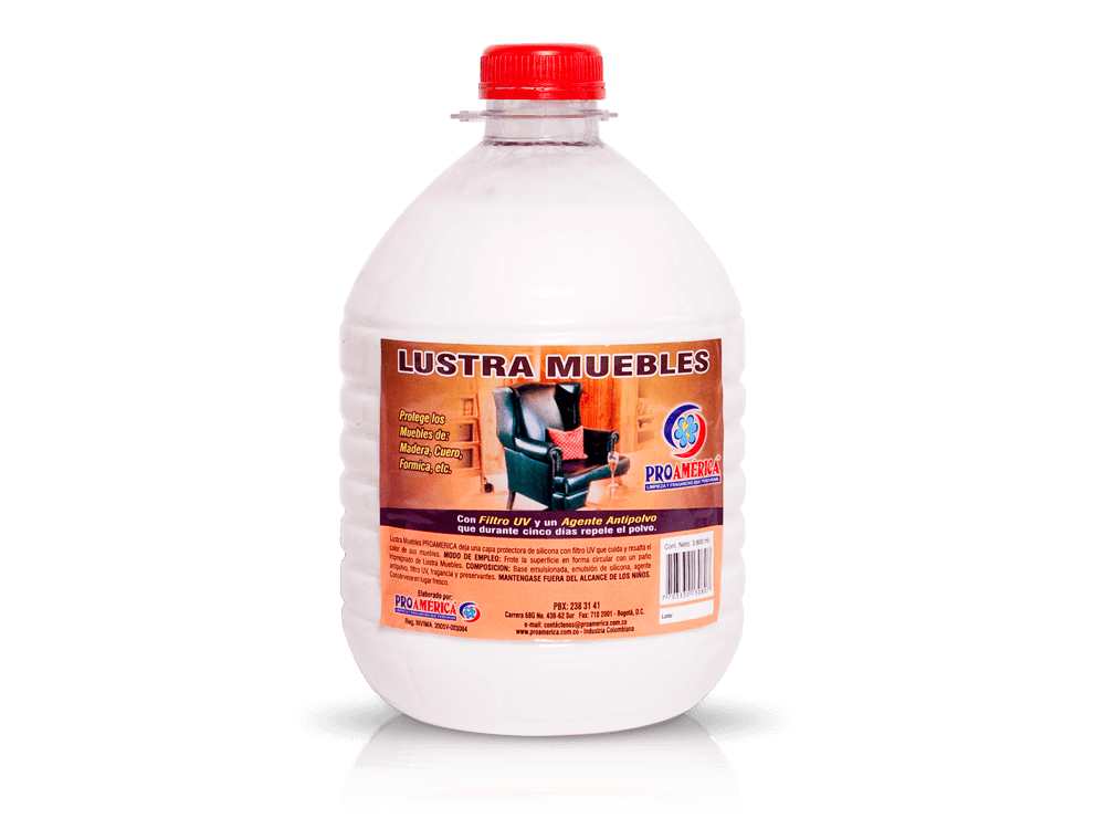 Descripción: LUSTRAMUEBLES PROAMERICA es una emulsión de consistencia cremosa y olor muy agradable, libre de solventes que puedan atacar las lacas, barnices o pinturas empleadas en muebles.