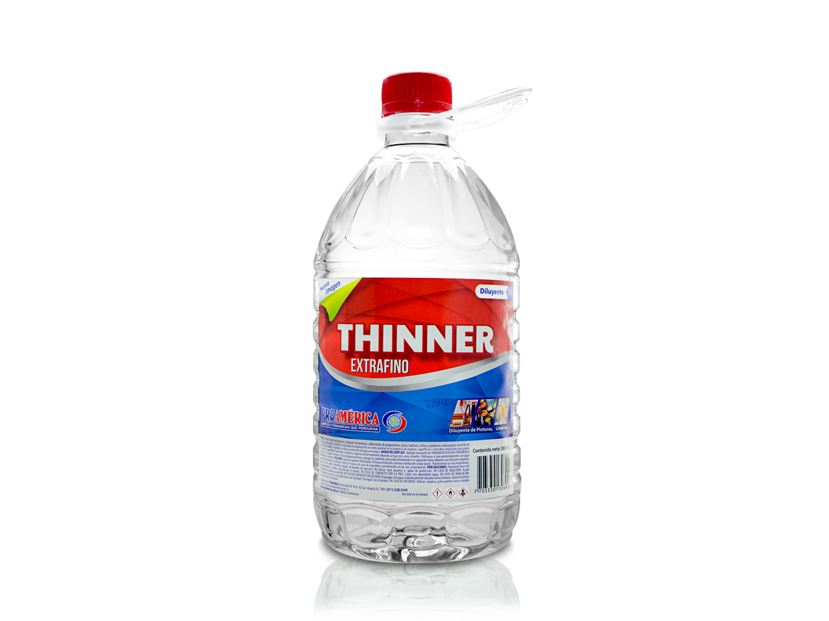 • Aplica una parte de THINNER EXTRAFINO PROAMÉRICA puro sobre la superficie o utensilio a limpiar y esparce uniformemente dejando actuar por unos minutos. Refriega y lava profundamente con agua hasta que no queden residuos. Para adelgazar pinturas agrega la cantidad adecuada lentamente e ir agitando hasta obtener una dilución completa, homogénea y uniforme.